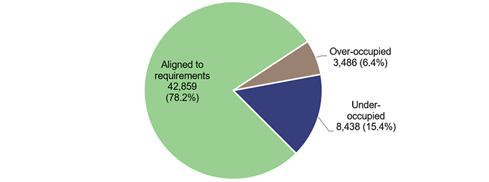 Typically, a dwelling needs 2 or more spare bedrooms to be considered under occupied. Over occupied dwellings must require at least one additional bedroom. Figure 5A outlines the March 2022 levels of occupancy in social housing across Queensland.